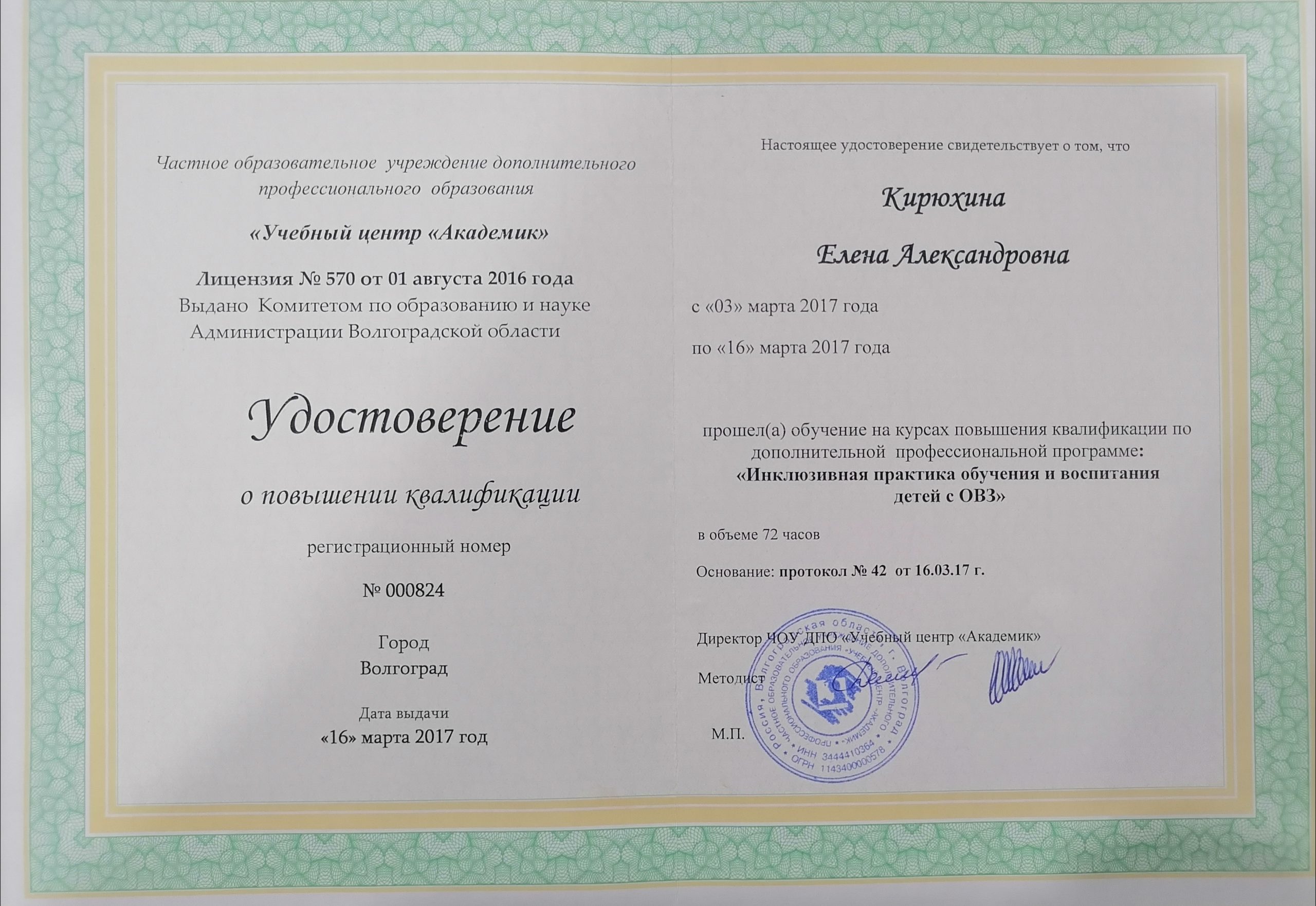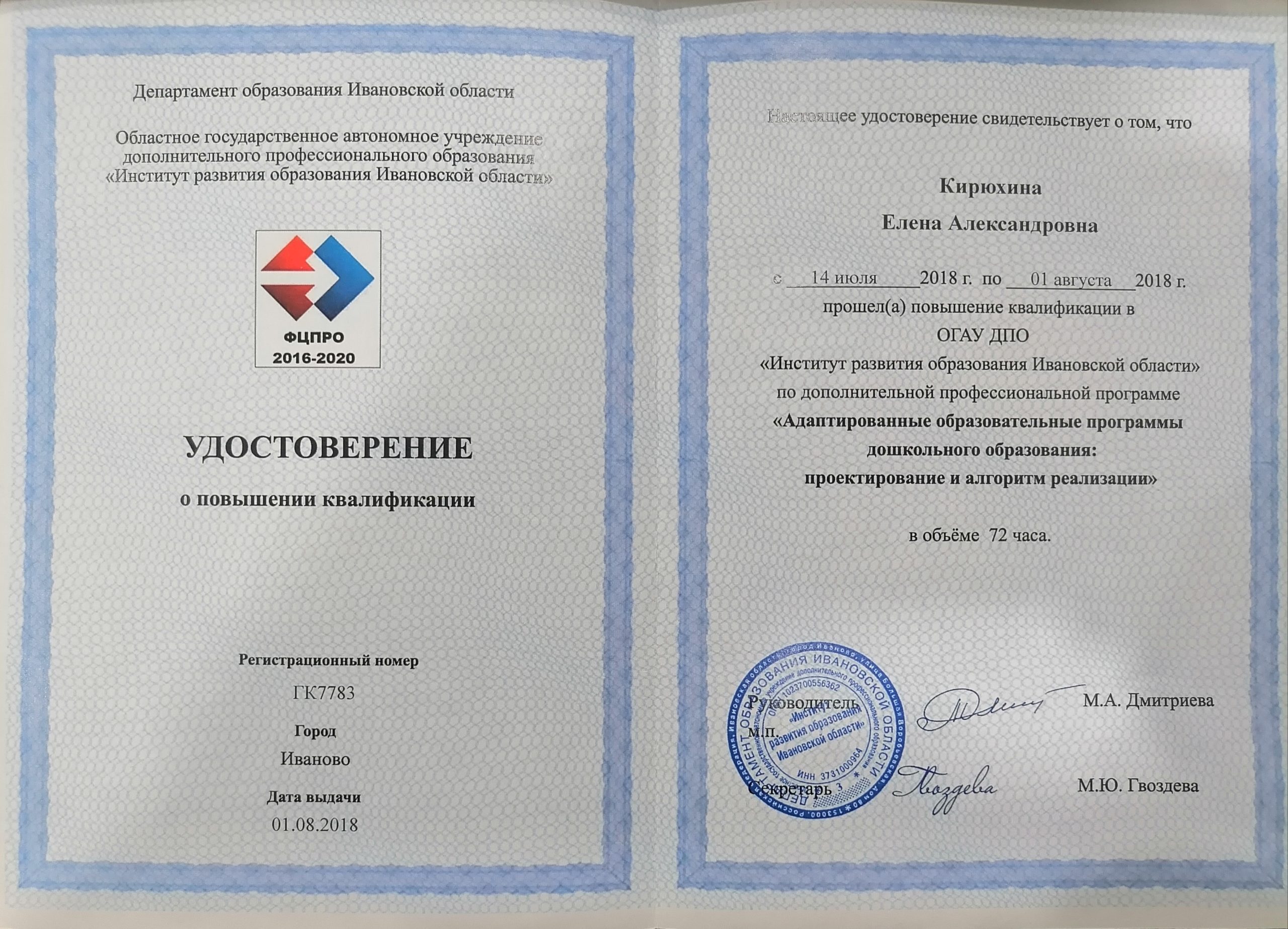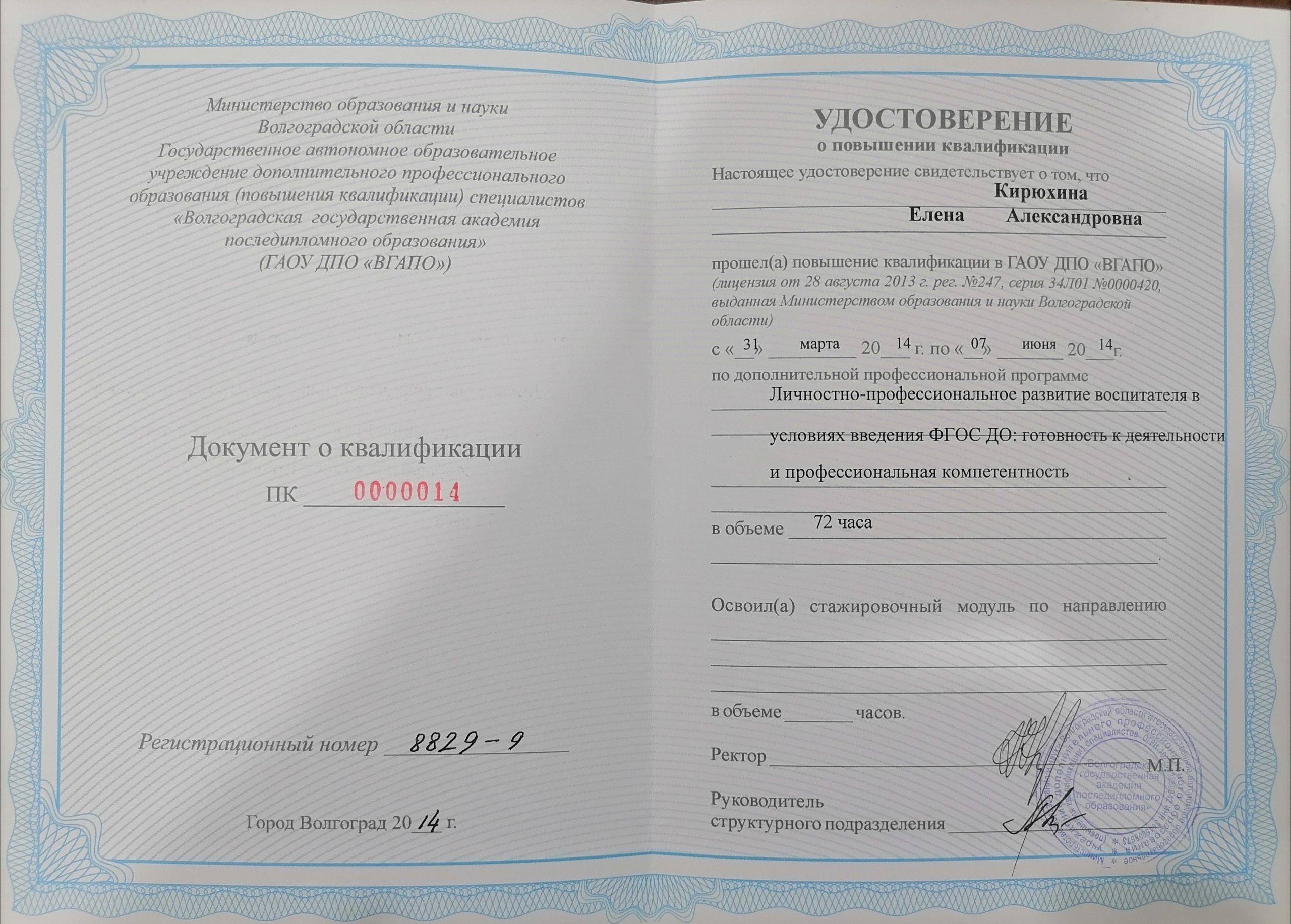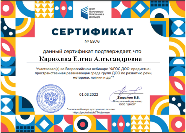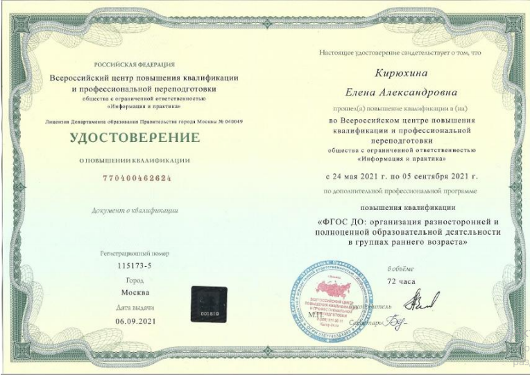 Кирюхина Елена Александровна воспитатель